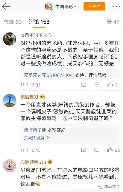 而中国电影协会下面的评论里,也是满满的称赞冯小刚的声音,有的在为冯小刚打抱不平,就差没有给冯小刚跪下磕头了。