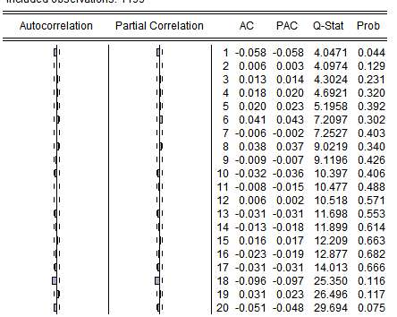 请教Eviews自相关检验图如何判断几阶自相关呢?