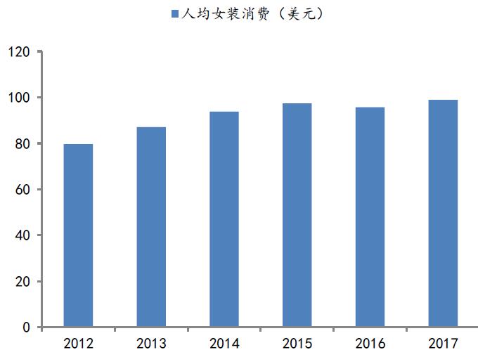 女性消费热情高涨。女性消费者数量的增加及收入水平的提高,为女性消费行业带来持续的增长动力。据调查,女装市场消费者中25-29岁女性占比最高,达到28%;30-34岁女性占21%。这两个年龄层的女性是消费群体中购买单件服装价值最高的群体,其消费观和审美观已相对成熟,对设计、风格的要求比较高,对轻奢女装的需求尤为旺盛。未来伴随着这一年龄层次女性人口的增长,轻奢女装的市场有望进一步扩大。
