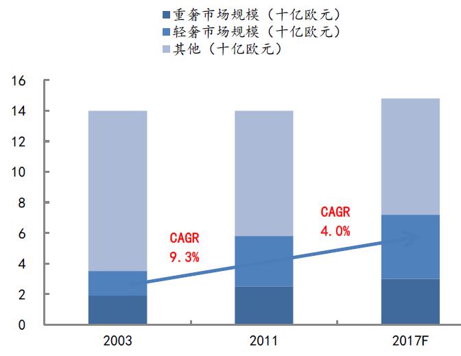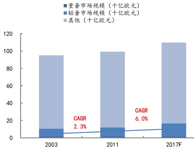 轻奢女装成为欧美女装市场的主要增长来源。在轻奢板块的迅猛增长中,轻奢女装的表现尤其引人注目。中为智研数据显示,2003-2011年法国市场,重奢、轻奢和其他(包括大众、评价和折扣等)品类女装年复合增长率分别为+3.6%,+9.3%和-0.9%。2011-2017年轻奢女装同样保持年均4%的高复合增长率。轻奢已经成为法国女装市场的主要增长驱动。美国女装市场中轻奢表现不俗。2011年至2017年,美国女装市场整体增幅仅为1.7%,其中轻奢年均复合增长率为6.0%,增长率为奢侈品的4倍,是其他品类服装的6倍。轻奢市场份额不断扩大,2017年美国轻奢市场规模将近149亿美元。轻奢女装市场的强势增长在欧美得到了有力验证,已经成为欧美女装的一大亮点。