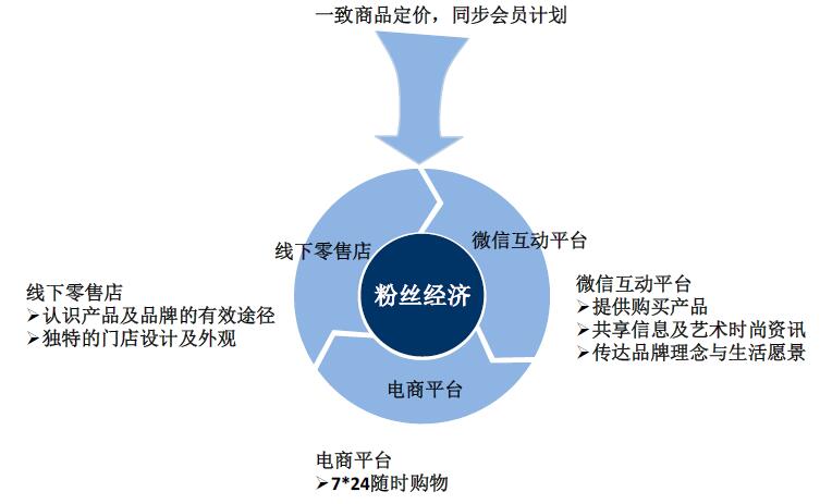 江南布衣堪称深挖会员资源的典范,通过广泛的产品及品牌组合,创建满足客户不同生活阶段的所需品的生态圈,从而拥有众多忠实的客户群体。零售店、网上平台和微信互动营销服务平台三者结合,形成全渠道互动平台,成功将客户转变为忠实粉丝。江南布衣随性自然的调性不断被粉丝们认可。这种看似寻常却时尚感十足,辨识度极高的服饰迅速在服装市场中脱颖而出。通过培养认同江南布衣风格的粉丝,从而促使粉丝购买公司旗下各相似类型的服饰。