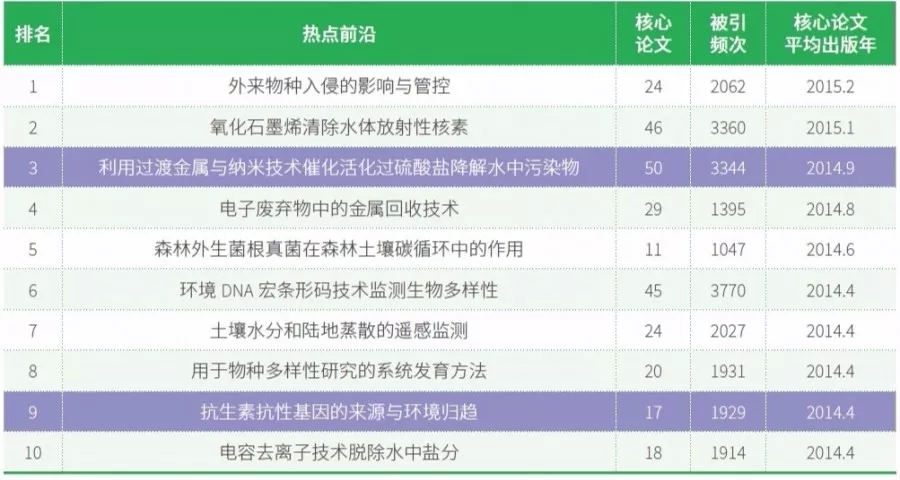 表2 生态与环境科学领域Top10热点前沿