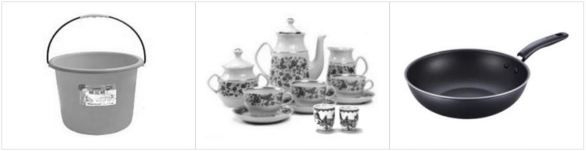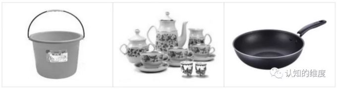 我们先从日常基本的需求过程说起。下图列举的是几个非常典型的日常生活用品,它们都能够满足某一方面的需求,有的能装水,有的能品茶,有的能炒菜,缺少了这些道具,相关需求就变得有些棘手。现在的问题是:为什么水桶要带一个提手?水桶的边缘为什么是卷起来的?为什么茶壶通常有个耳朵,一些大茶杯有耳朵而小茶杯又没有耳朵?为什么铁锅一般有一个长长的手柄?