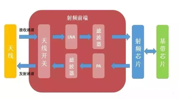 现代移动设备的无线通信模块主要包含射频前端模块,射频收发模块,以及基带信号处理器。其中,射频前端负责射频收发、频率合成、功率放大,该模块主要包括:天线开关,双工器,功率放大器,以及滤波器。其中滤波器作为对信号有处理作用的器件和电路,可以使信号中特定频率成分通过筛选进入,并同时极大抑制其他频率、无关信号的干扰。