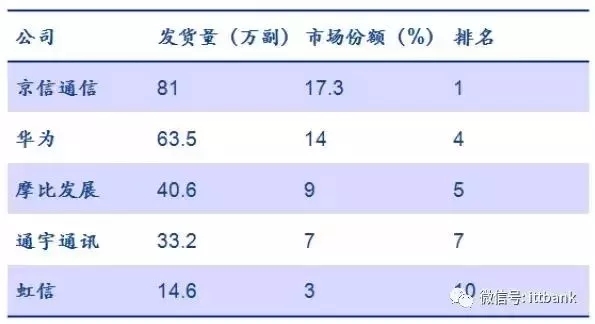 ▲2014 年我 国五大基站天线厂商发货量和市场份额