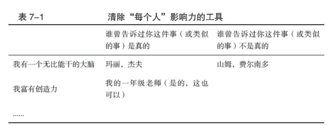 贝克推荐了一种消除大脑中关于“每个人”限制的工具。它的原理是:找到所有的关于创造力、创新和产生突破性灵感的论述,这些论述必须是你认可的,同时也是你认为客观真实的。