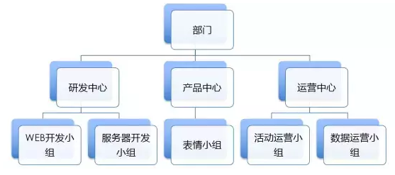 腾讯业务部门的小三层金字塔如是划分:部门由总经理负总责,位于金字塔的顶层,负责管理的队伍规模一般有几十人,多者甚至达到500人。下面形成了下一层级的若干个业务中心或岗位中心,这一层级的领导被称为总监。再以下,位于这个金字塔的底层,是负责分工完成具体业务的小组,每个小组都由组长及普通员工组成。