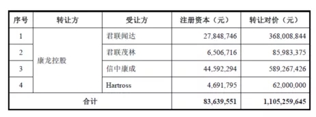 康龙控股转让其持有的康龙有限注册资本的具体情况如下: