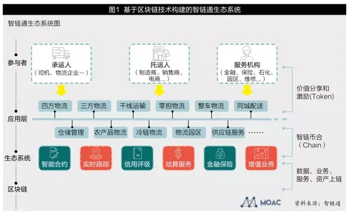 在这样一个可信货运物流生态中(见图1),货主在不增加额外IT投入的前提下实现了透明安全的数据化管理,司机通过APP和智能硬件就可以获取及时的货源订单、优化的物流路径和可靠的货物保障,而信息平台则可以专注提供运力匹配,建立共识合约机制,最终使得整个供应链有效组织优质长尾物流资源,同时协调和满足联盟参与各方的利益诉求。