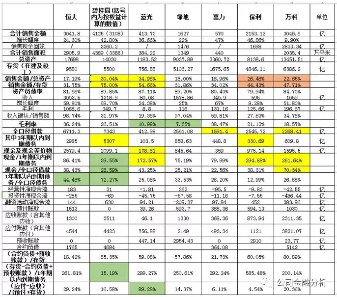 ②又比如其还对全口径负债未来分年度的偿还额做了详细说明,这两点都是在其他房地产公司半年报里所没有)。所以,我只能选择普遍性披露的数据来做比较。但就算如此,将由从下表我们也可以发现很多有意思的东西: