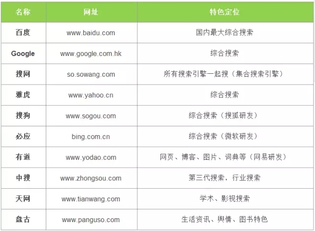 搜索引擎是我们信息资料搜集的最重要的渠道之一,用搜索引擎查找信息资料需要使用恰当的关键词和一些搜索技巧。目前国内主要的搜集引擎有如下10个,近期还有较多行业型搜索冒出来,需找专业型行业资料可以使用行业型搜索引擎。