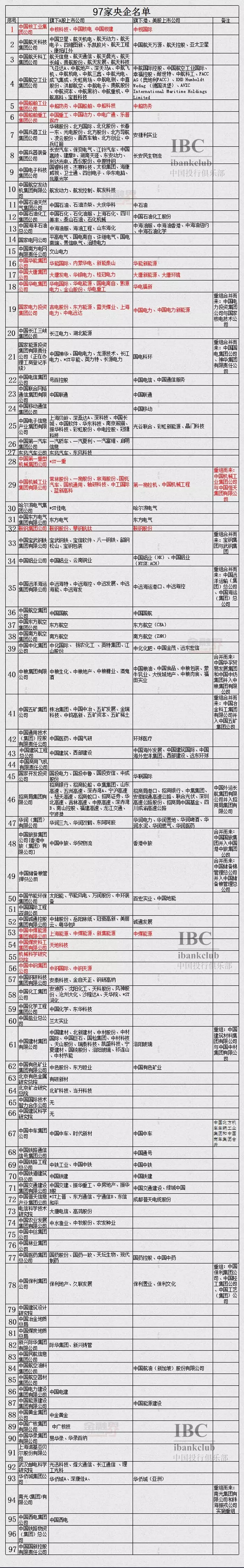 以下是2018年最新97家央企及旗下上市公司全名单: