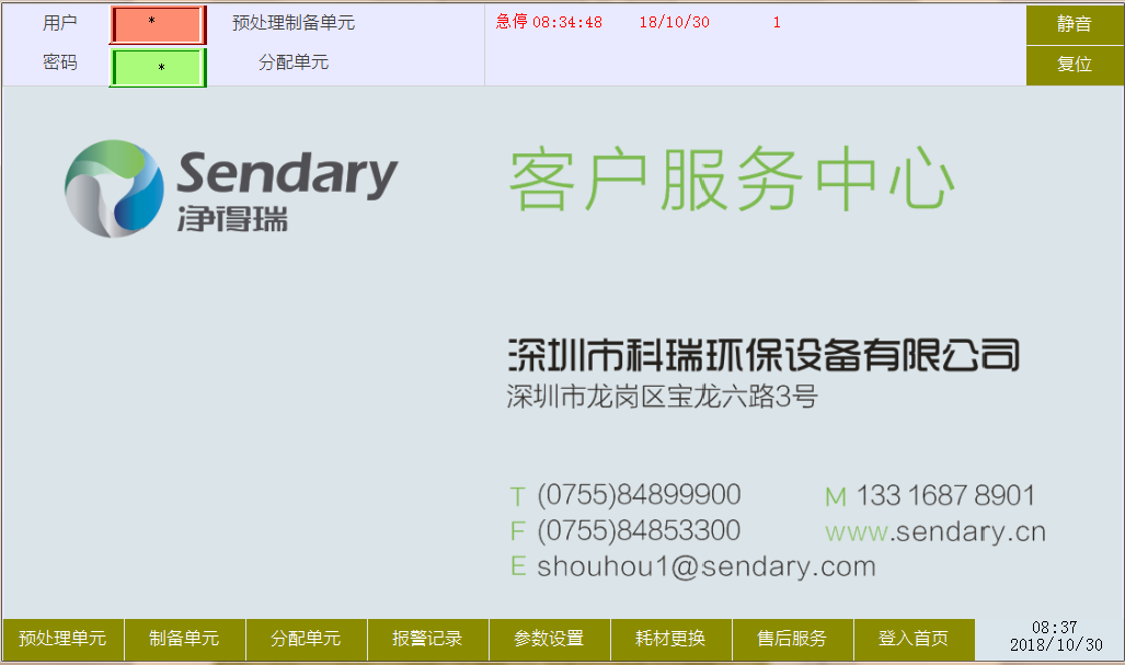 (2)、自动模式时多介质过滤器正洗模式、反洗模式、产水模式根据处理参数设定时间开启或关闭。