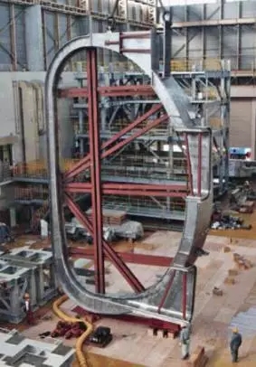 首先它要形成的磁笼一共有18段,像橘子瓣一样。这是什么概念?波音747重量370吨,这一个线圈在360吨左右;价钱也是差不多的,波音747是2.6亿美元,这大概是2.8亿欧元。