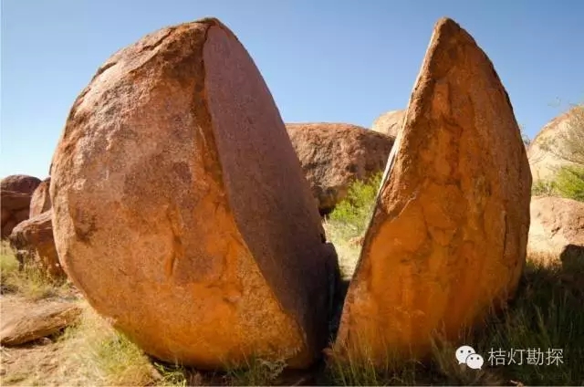 风动石突然像刀切西瓜一样被分成两瓣,切口原来是一张裂隙(节理)