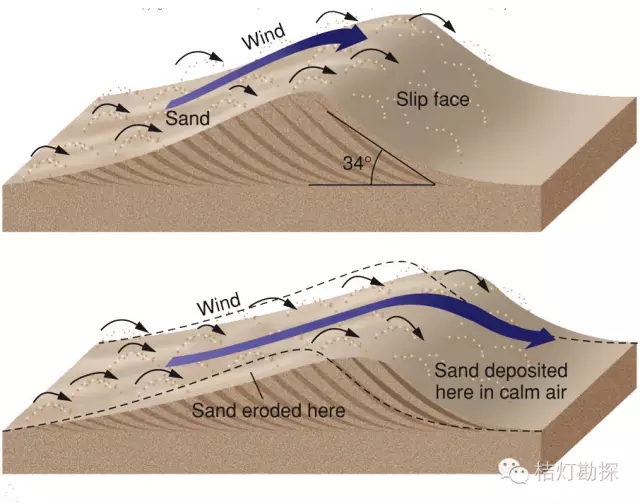 沙丘两侧不同的地质过程图解: