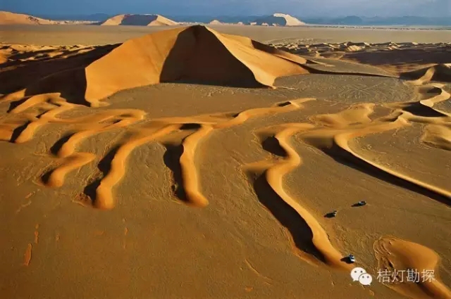 沙丘的延长方向与起沙风合成风的方向基本平行,呈长条垄状展布,可达数十千米长,几十甚至上百米高,几百米宽。沙源丰富时形成复合型纵向沙垄, 照片上看久像玉米棒的表面。