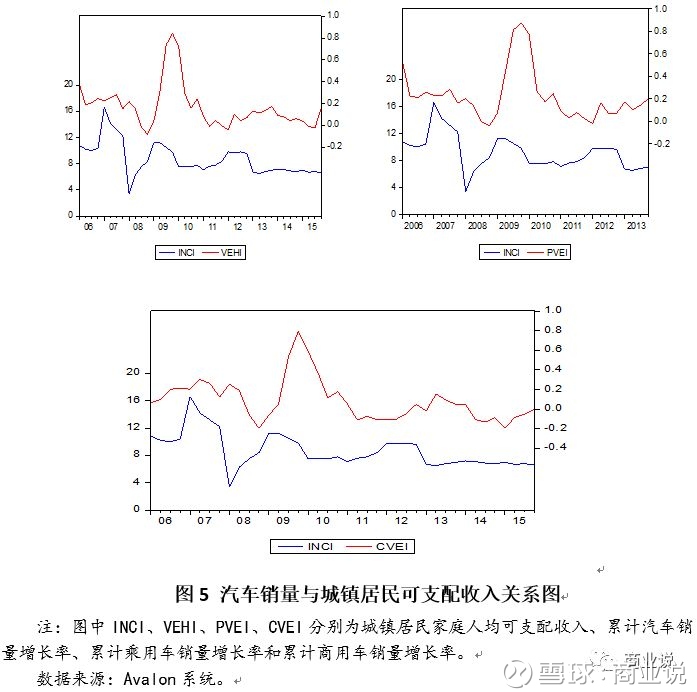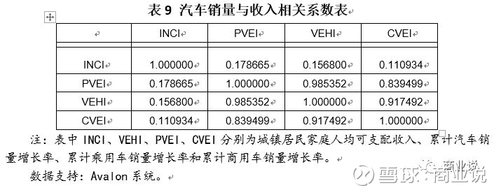 结论:在同一时期内,汽车销量与城镇居民家庭人均可支配收入增长率关系极弱,相关系数不超过0.2。