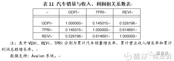 结论:销量和收入关系密切,相关系数高达0.9,但与利润关系较小,相关系数只有0.4,而收入和利润间的相关系数则只有0.6,反映出从销量到利润之间有较远的距离。目前我国很多车企为了铺销量,占市场,宁可战略性的放弃利润造成了销量与利润相关性脱节的现象。未来,企业为了实现利润,除销量之外,还必须在成本控制等方面多下功夫。