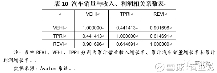 结论:虽然销售收入和销量保持了较高的相关性(0.90),但是利润总额和销量的关系却并不明显,相关系数低于0.5。显示我国汽车行业,成本、费用、价格等其他因素的改善对利润的提升作用高于单纯销量的提升。这与众多自主品牌汽车宁愿放弃利润,也要铺销量的战略有关。