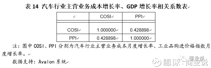 结论:汽车行业主营业务成本增长率和GDP增长率之间波动关系相关性明显。