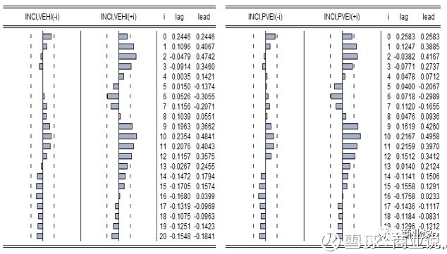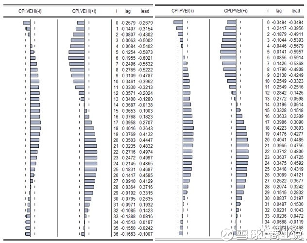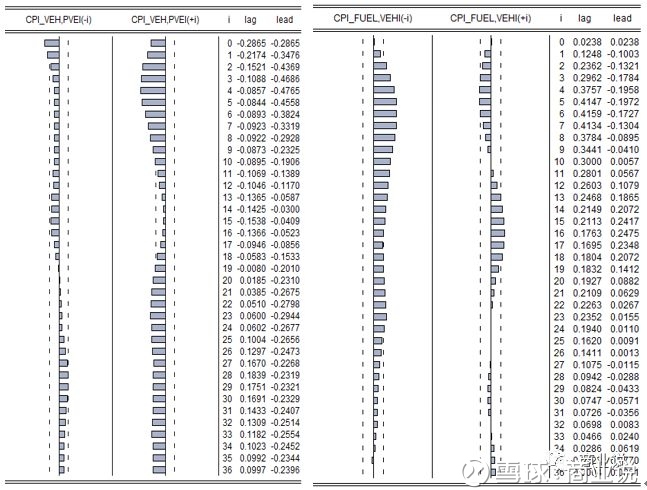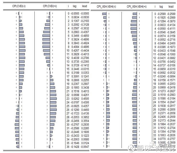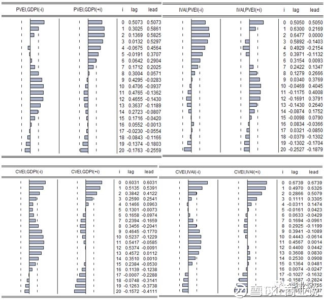 结论:GDP波动对收入的相关性只体现在当期,对前期和后期的指标相关性指示作用不显著。而GDP波动对收入的相关性则在当期和前、后期均不显著。