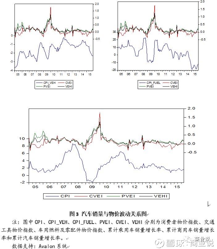 注:图中CPI、CPI_DUR、CPI_FUEL、CPI_VEH、REVI、TPRI分别为消费者物价指数、耐用消费品物价指数、车用燃料及零配件物价指数、交通工具物价指数、汽车行业营业收入增长率、汽车行业利润总额增长率。