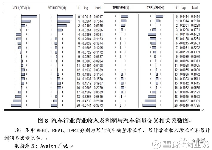 结论:销量和营业收入及利润总额的增长率变化主要表现在当期,滞后或提前期的相关性都较弱。但营业收入与销量的关系显著大于利润与销量的关系(图8).