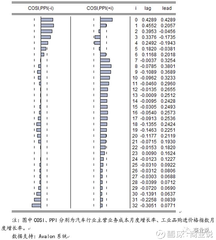 结论:汽车行业主营业务成本增长率与价格指数变动存在同期相关性,相关系数0.43,较价格指数与主营业务收入之间关系略高。