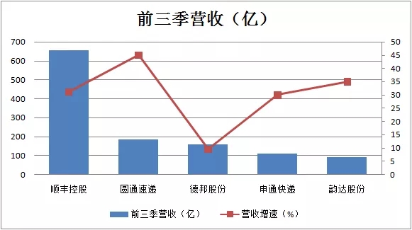据市界统计,在A股上市快递公司近日披露的三季报中,顺丰控股依然是营收最多的公司,但圆通速递(600233.SH)营收达到了186亿,且同比增速高达45%,远超顺丰。