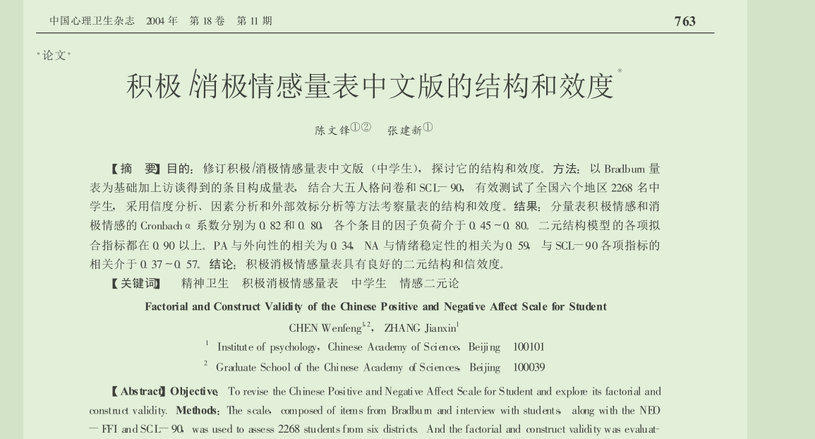 哪位大神有人大陈文锋老师的《积极 消极情感量表中文版的结构和效度》(2004)文章里面提到的 “积极 消极情感量表中文版的问卷吗”?本人邮箱是