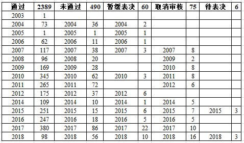 4、截止20181119,证监会首发审核3014家。(通过2389、未通过490、暂缓表决60、取消审核75、待表决6)