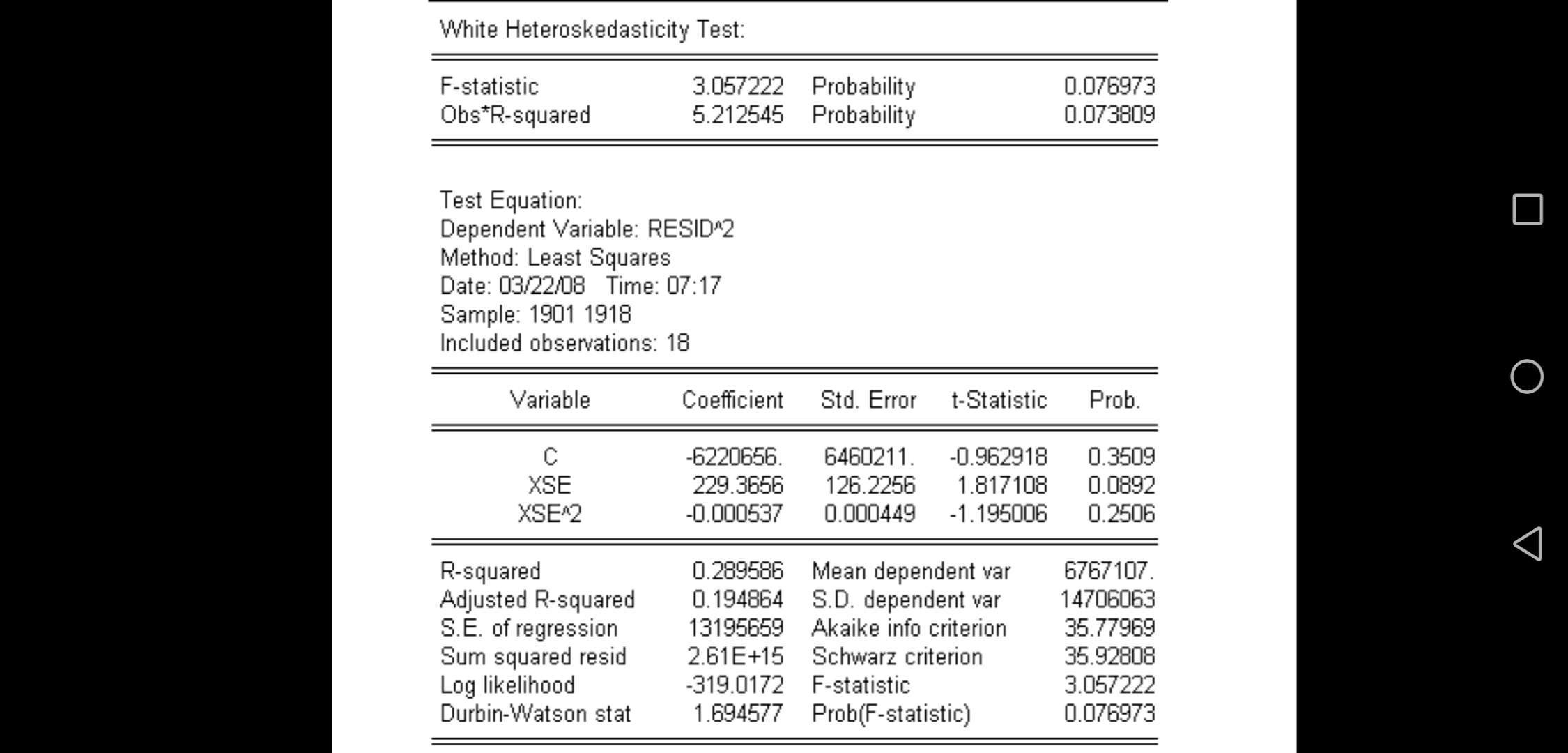 请问怀特检验是怎么判断的?应该看图中的哪个值?