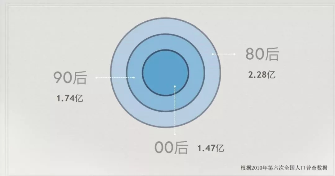 在中国80后2.28亿,90后1.74亿,00后1.47亿。