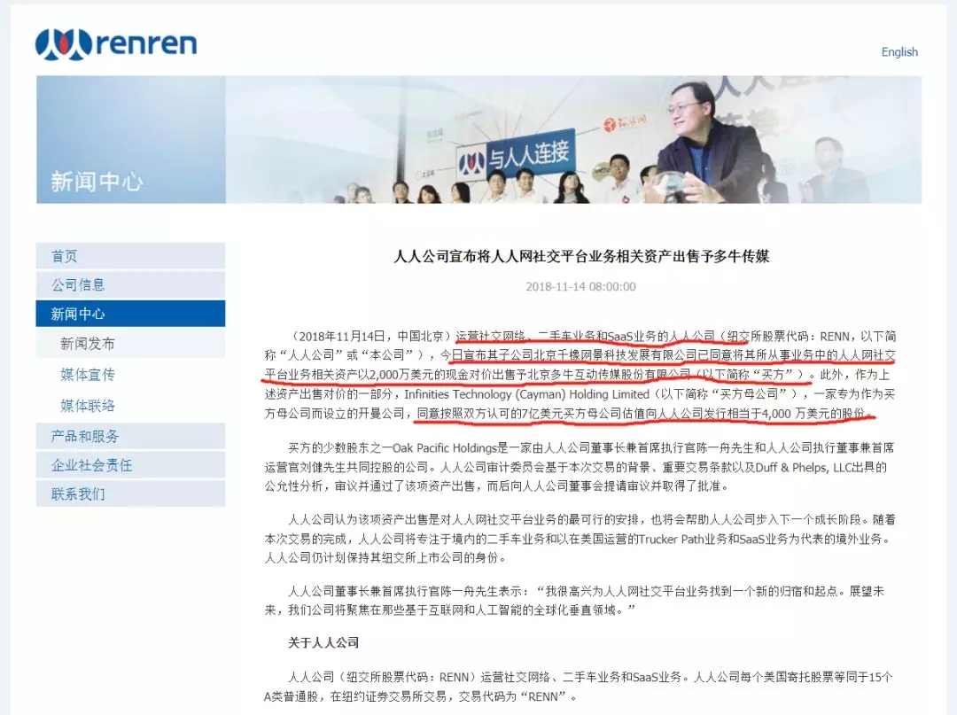 人人网从上市公司人人拆分出售,2000万美元+相当于4000万美元的股份!