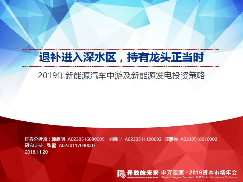 申万宏源2019年新能源汽车中游及新能源发电投资策略:退补进入深水区,持有龙头正当时20181120