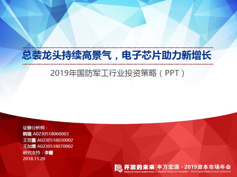 申万宏源2019年国防军工行业投资策略:总装龙头持续高景气,电子芯片助力新增长201811