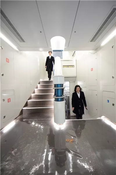 此外,乘客座椅采用法式软面材料,客室两端配备先进的乘客影音娱乐设施,全车设有残疾人卫生间。