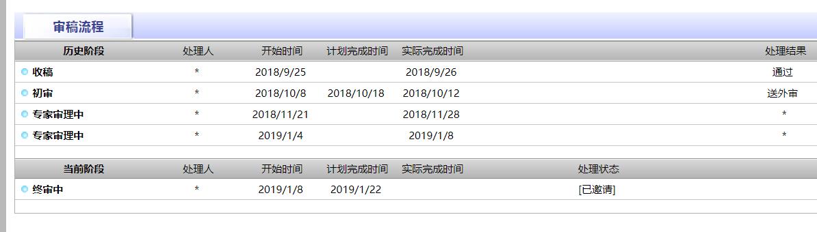 发不出论文的二呆 发表于 2019-1-15 13:52 进入这个环节很快就会出结果了。关键还是看外审结果。