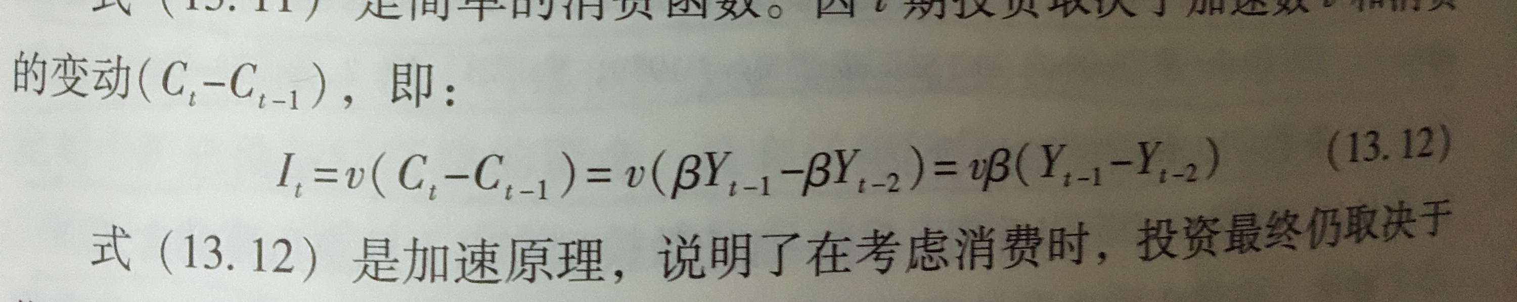 ⑶http://wenku.baidu.com/view/2e0d9985bceb19e8b8f6bada.html加速数指由收入变动或消费变动对投资变动的影响。所以得出公式13.12: It=υ(Ct-Ct-1),接下来将公式13.11代入即可。