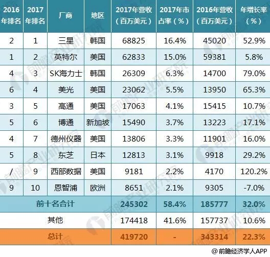 另外,最新发布的全球芯片制造商排名 ,Top 10中也仅一家中国大陆企业: