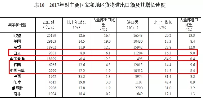 正因如此,在国家统计局公布的统计公报中能看到,韩国、日本与中国台湾三个地区是为数不多能与中国大陆保持顺差的地区。
