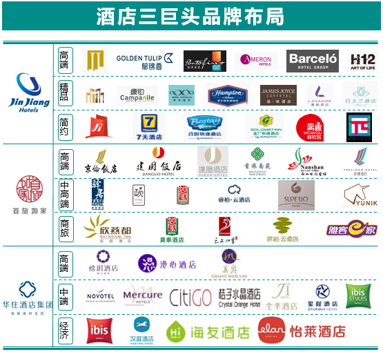 我国酒店行业品牌集群已形成,三巨头的品牌布局清晰完善