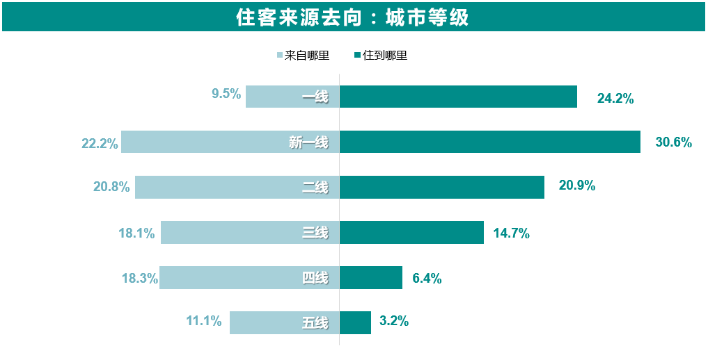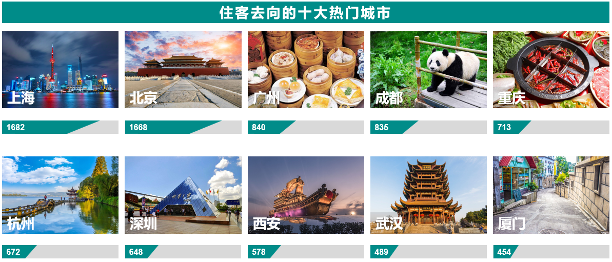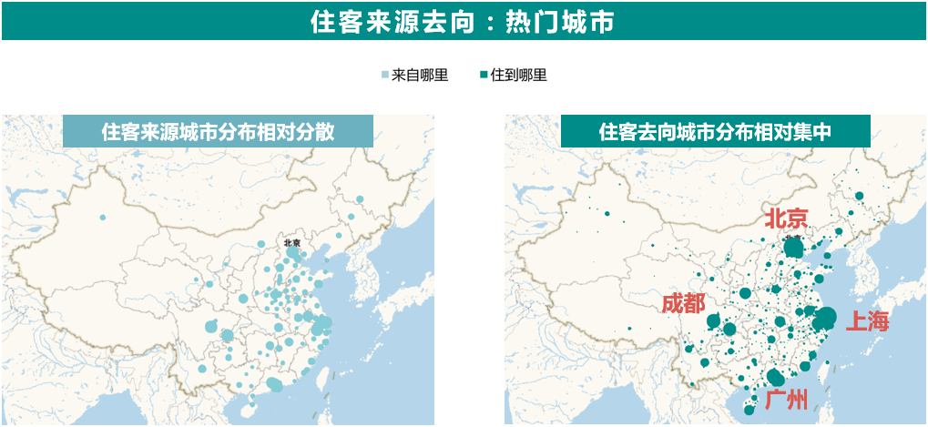住客的来源城市分布相对分散,而去向城市则相对集中。
