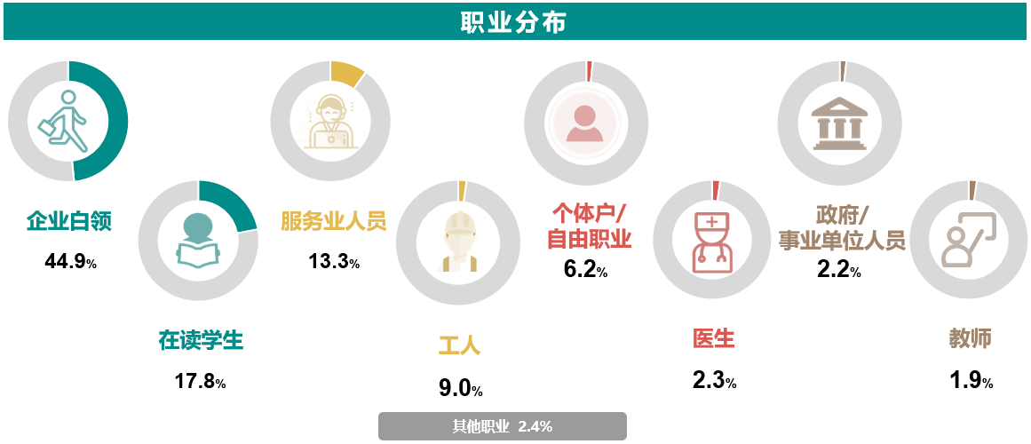 已婚人士和女性用户较多,多为中等收入和企业白领,有车比例高达31.5%。