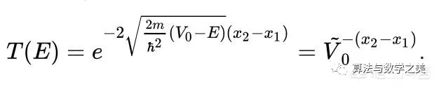 其中V0是势能壁垒的高度,而E是物质的能量。m是物质的质量,x2-x1就是宽度。hbar是约化普朗克常量。
