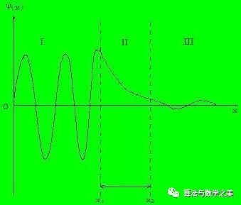 由此可见,在区域Ⅲ的波函数并不为零;原在区域Ⅰ的粒子有通过区域Ⅱ进入Ⅲ的可能,见图