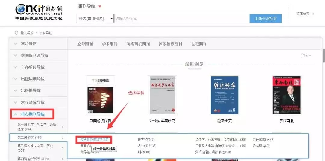 第三步:核心期刊导航-选择学科