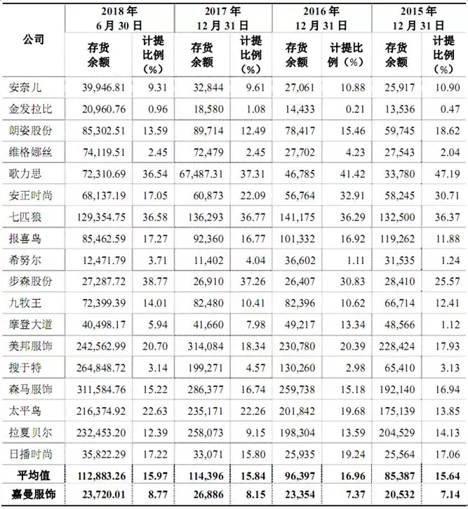 嘉曼服饰的存货很多,但在计提存货跌价准备时和同行业相比,低于行业平均值许多。