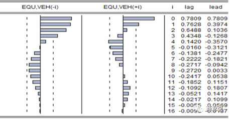 注:图中EQU为零部件行业分季度财报营业收入,VEH为汽车整车分季度累计销量增速。VEH(-i)指汽车行业分季度累计销量增速比零部件营业收入增速滞后i期(比如i=1,则对于2018年三季度的汽车零部件营收增速数据,使用2018年二季度的汽车行业销量数据与之对应,对于2018年二季度的汽车零部件营收增速数据,使用2018年一季度的汽车行业销量数据与之对应,以此类推,零部件行业营收数据永远对应比其早一期的行业销量数据,然后求两个有时间差的时间序列的相关关系);VEH(+i)则表示汽车行业销量数据,领先于汽车零部件行业营收增速i期,其意义与VEH(-i)意义相反。图表中最后两列,分别对应滞后或领先i期后,汽车行业销量增速与零部件行业营业收入的相关系数。